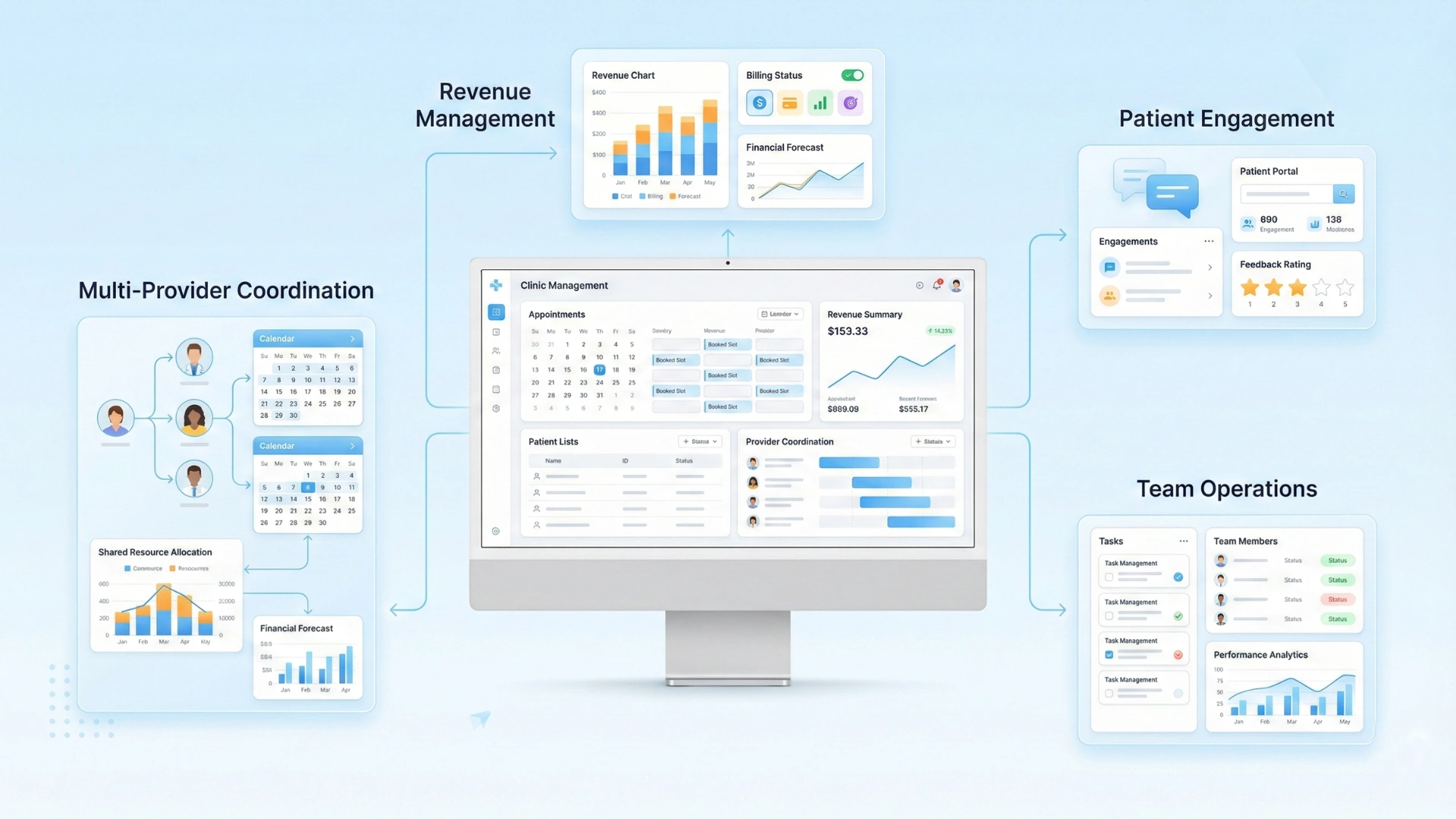 Coordinate providers, manage operations, and scale your practice with one unified platform designed for multi-doctor clinics